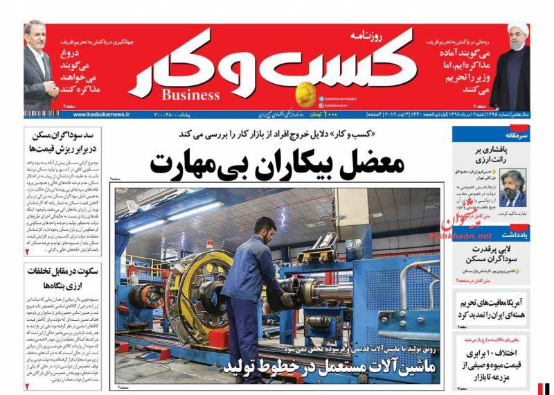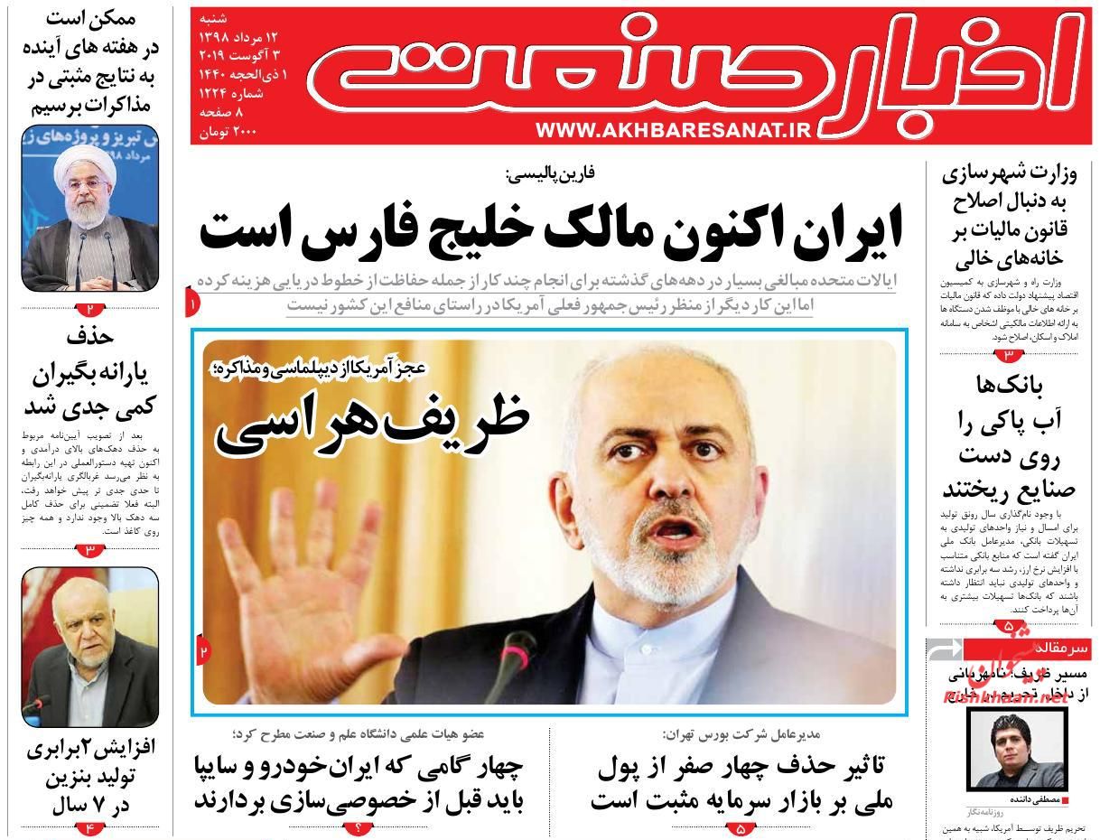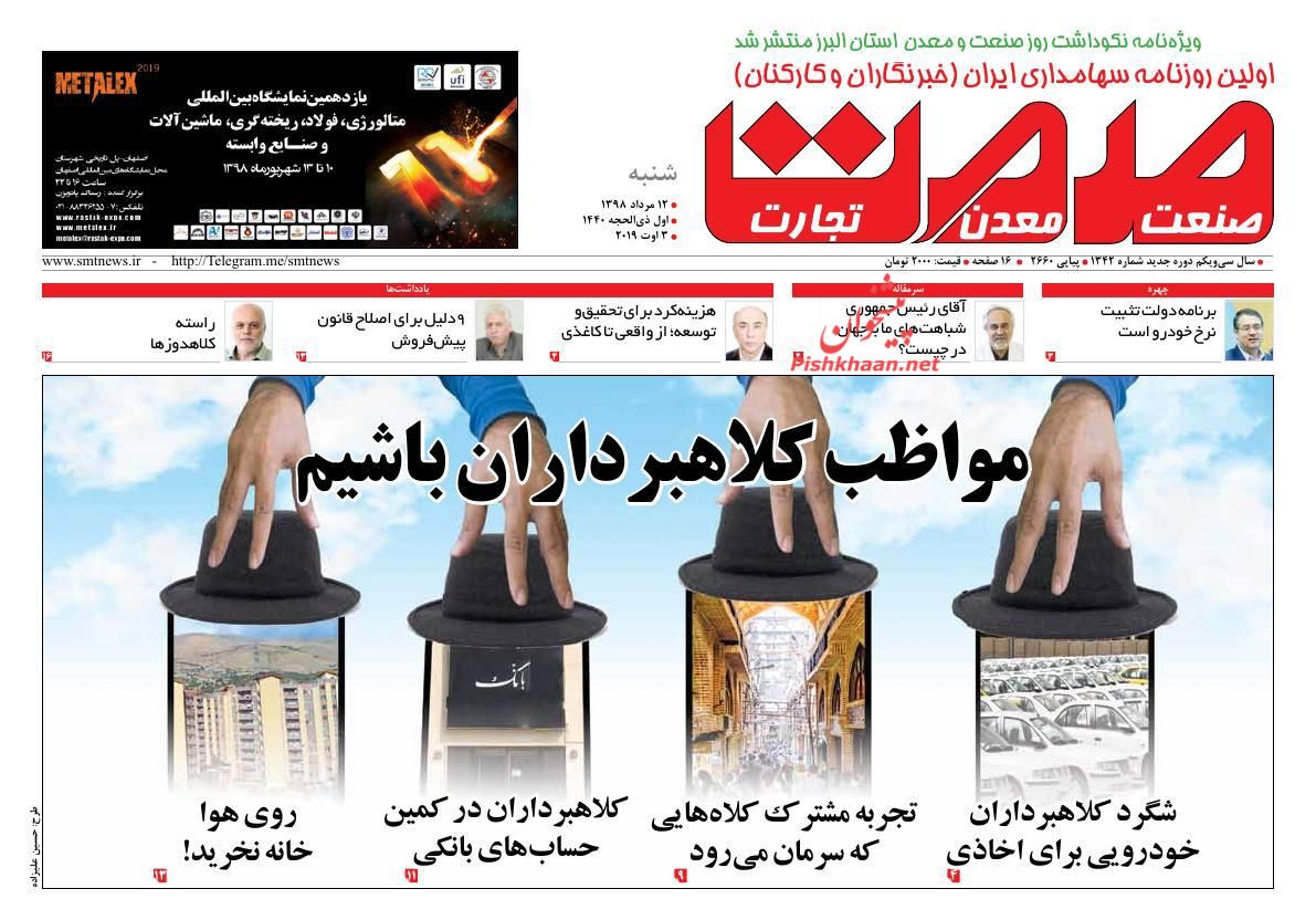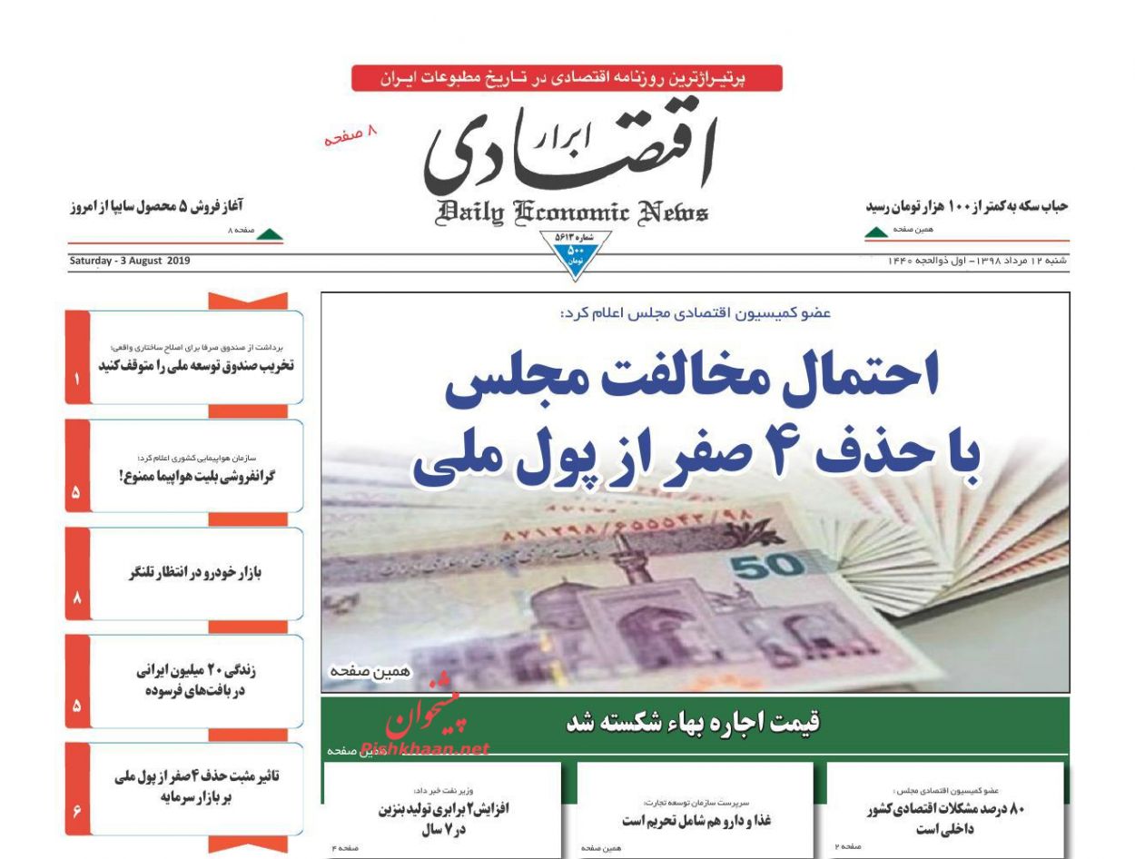 ابرار اقتصادی ، شنبه ۱۲ مرداد