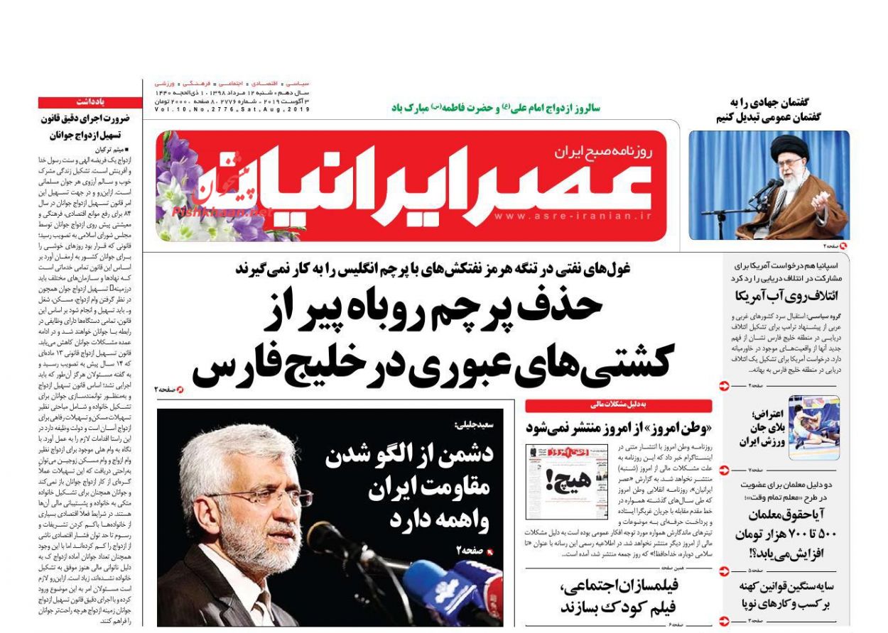 عصر ایرانیان ، شنبه ۱۲ مرداد