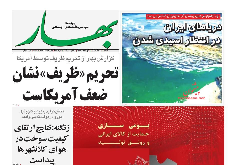 صدای اصلاحات ، شنبه ۱۲ مرداد