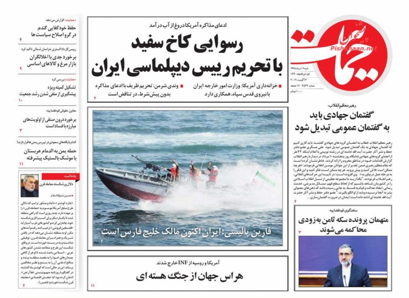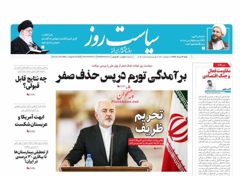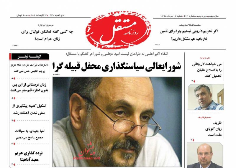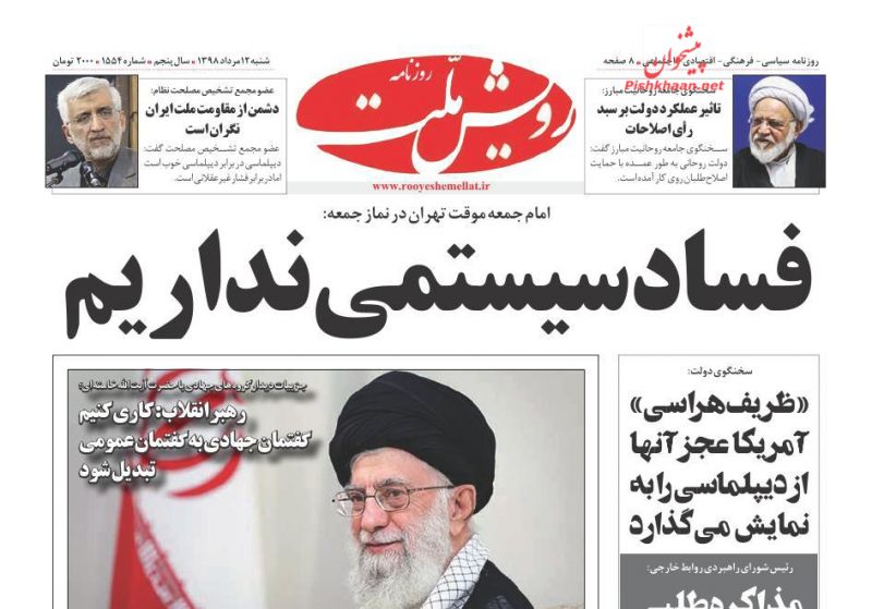 جمهوری اسلامی ، شنبه ۱۲ مرداد