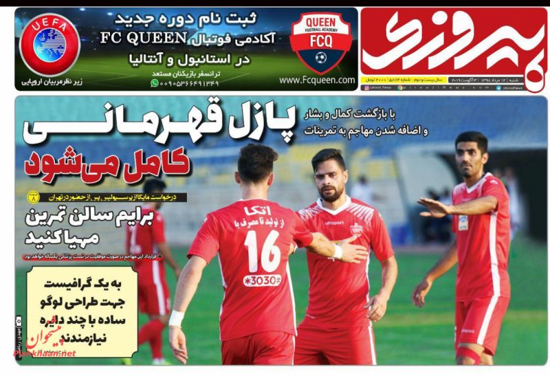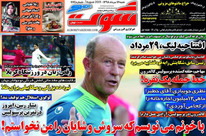 ایران ورزشی ، شنبه ۱۲ مرداد