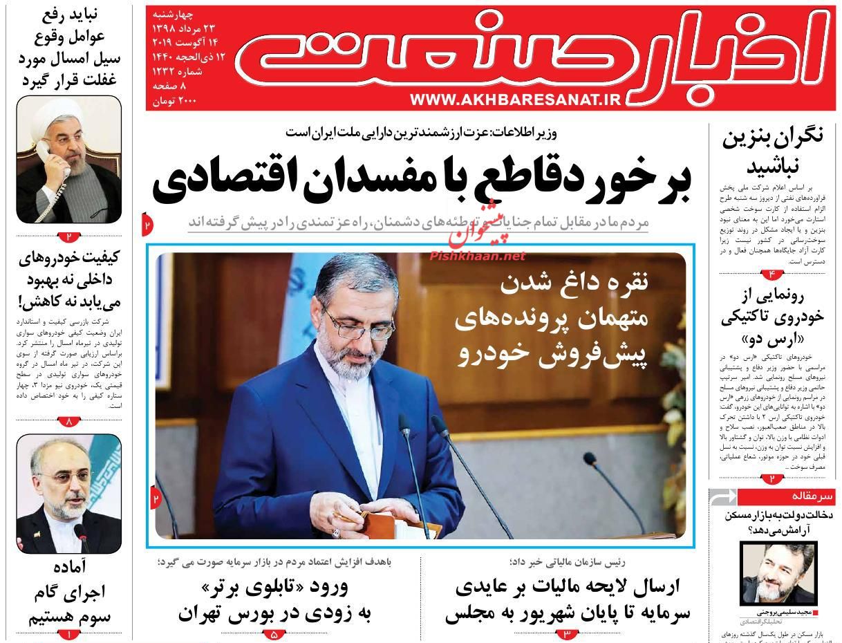 اخبار صنعت ، چهارشنبه ۲۳ مرداد