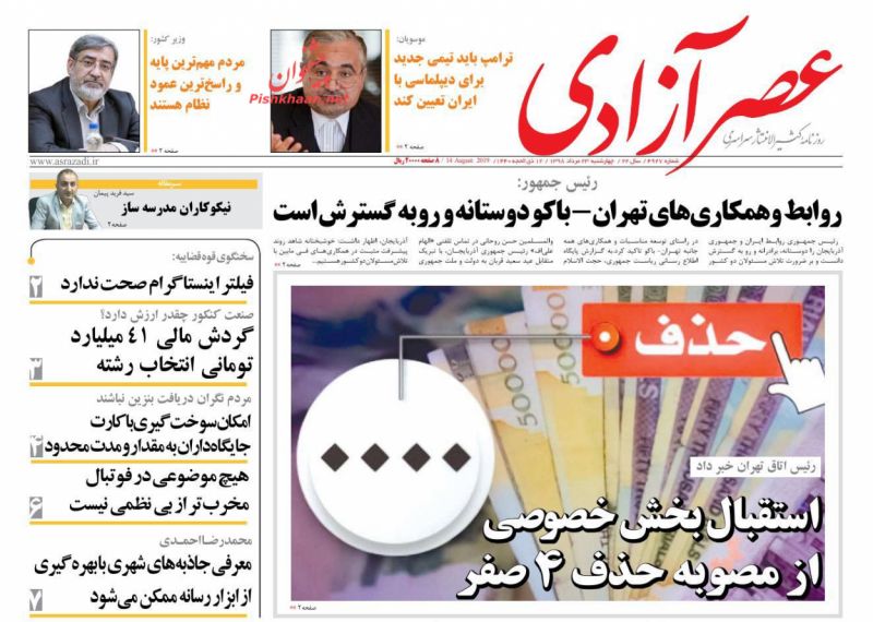عصرآزادی ، چهارشنبه ۲۳ مرداد
