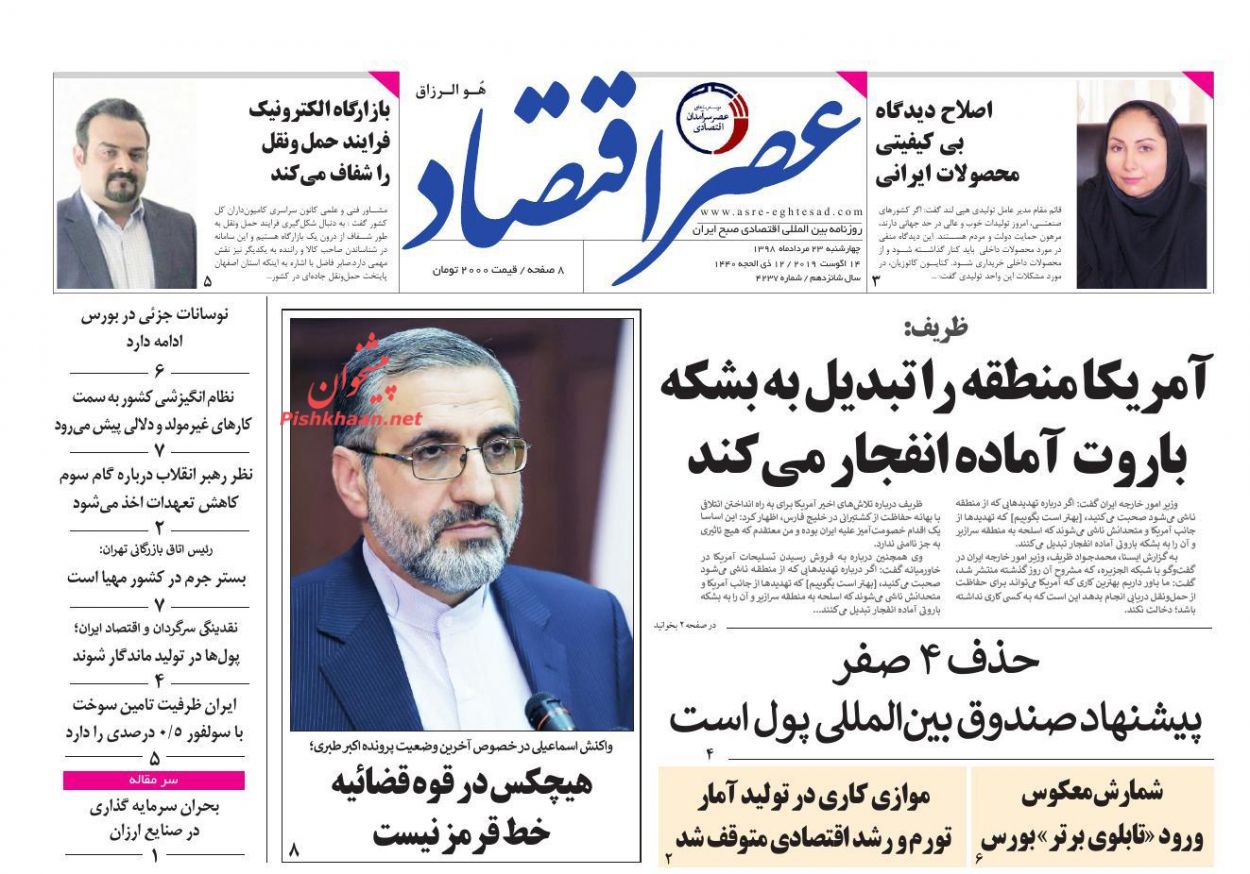 عصر اقتصاد ، چهارشنبه ۲۳ مرداد