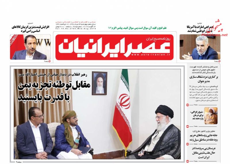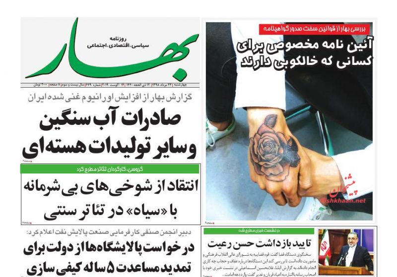عصر ایرانیان ، چهارشنبه ۲۳ مرداد