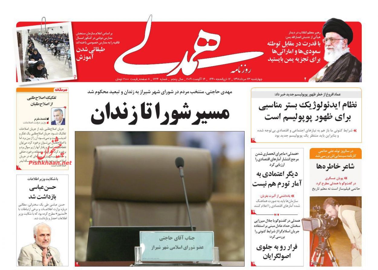 مردم سالاری ، پنجشنبه ۲۴ مرداد