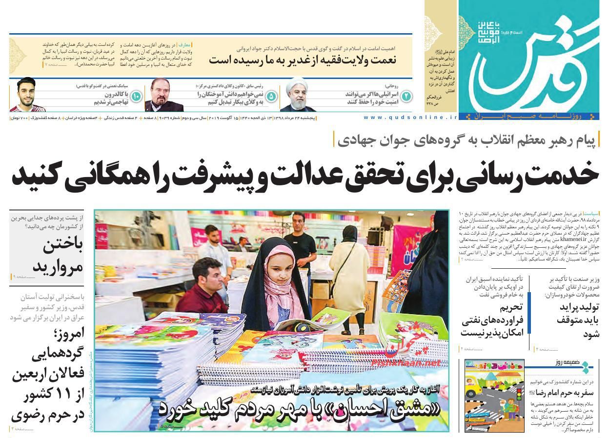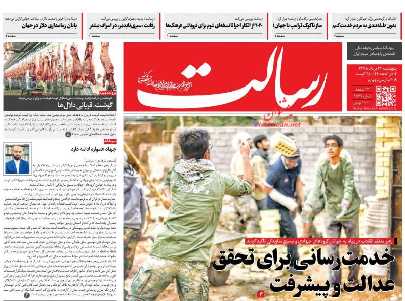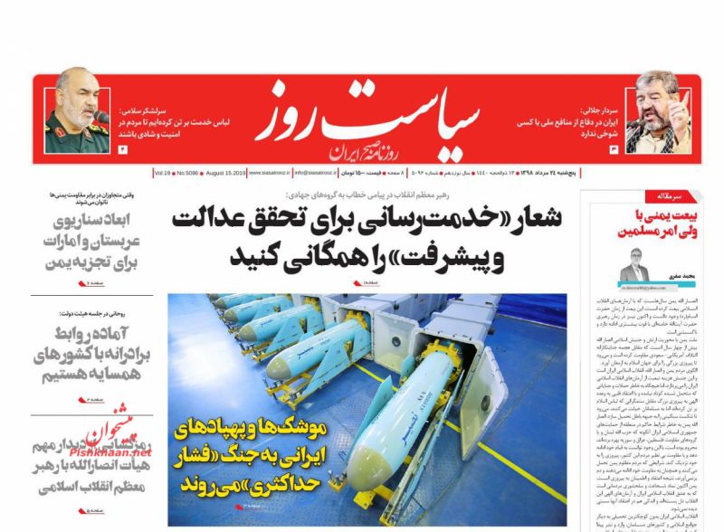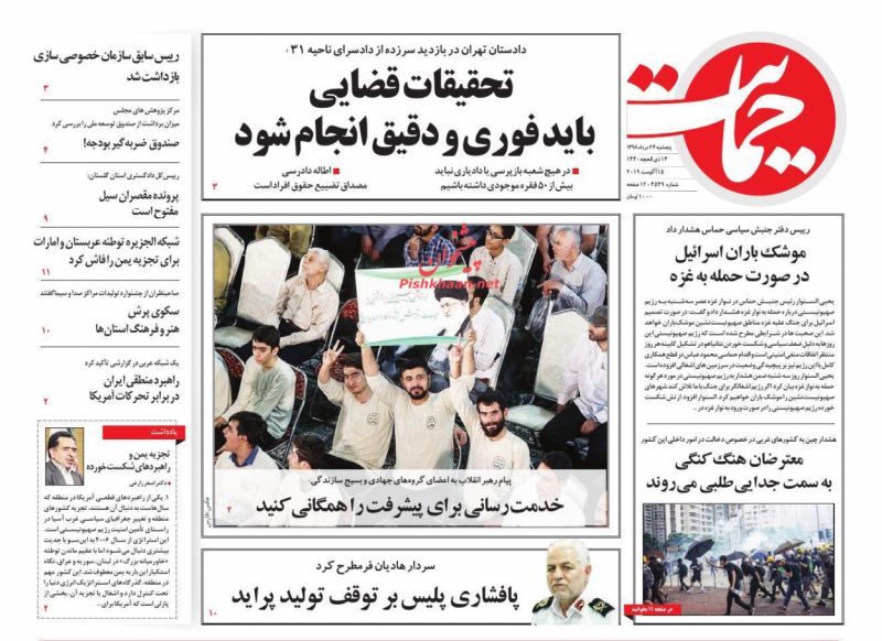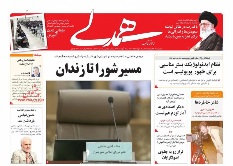 جمهوری اسلامی ، پنجشنبه ۲۴ مرداد