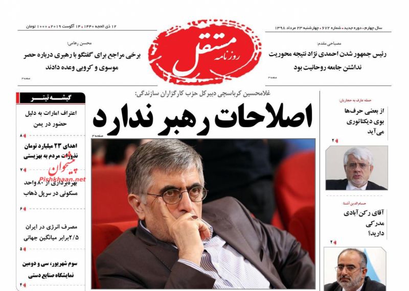 صدای اصلاحات ، چهارشنبه ۲۳ مرداد