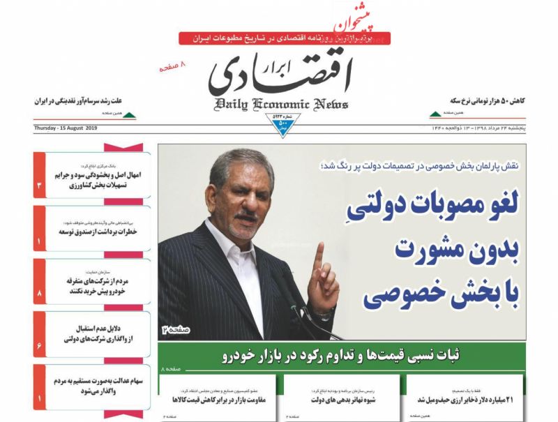 ابرار اقتصادی ، پنجشنبه ۲۴ مرداد