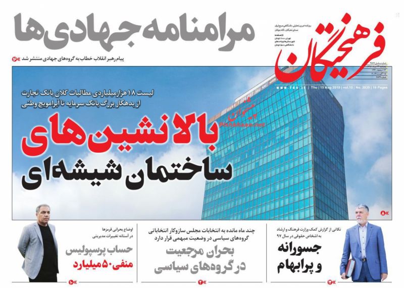 فرهیختگان ، پنجشنبه ۲۴ مرداد