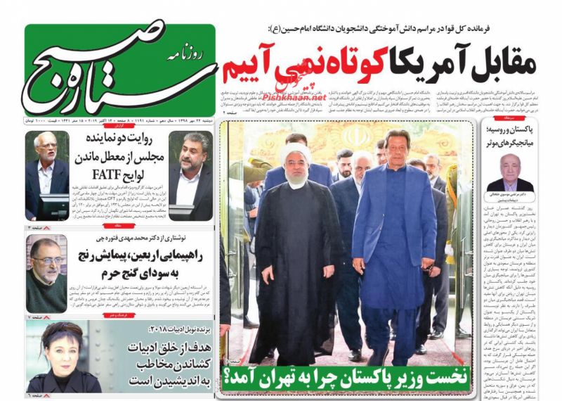 جمهوری اسلامی ، دوشنبه ۲۲ مهر
