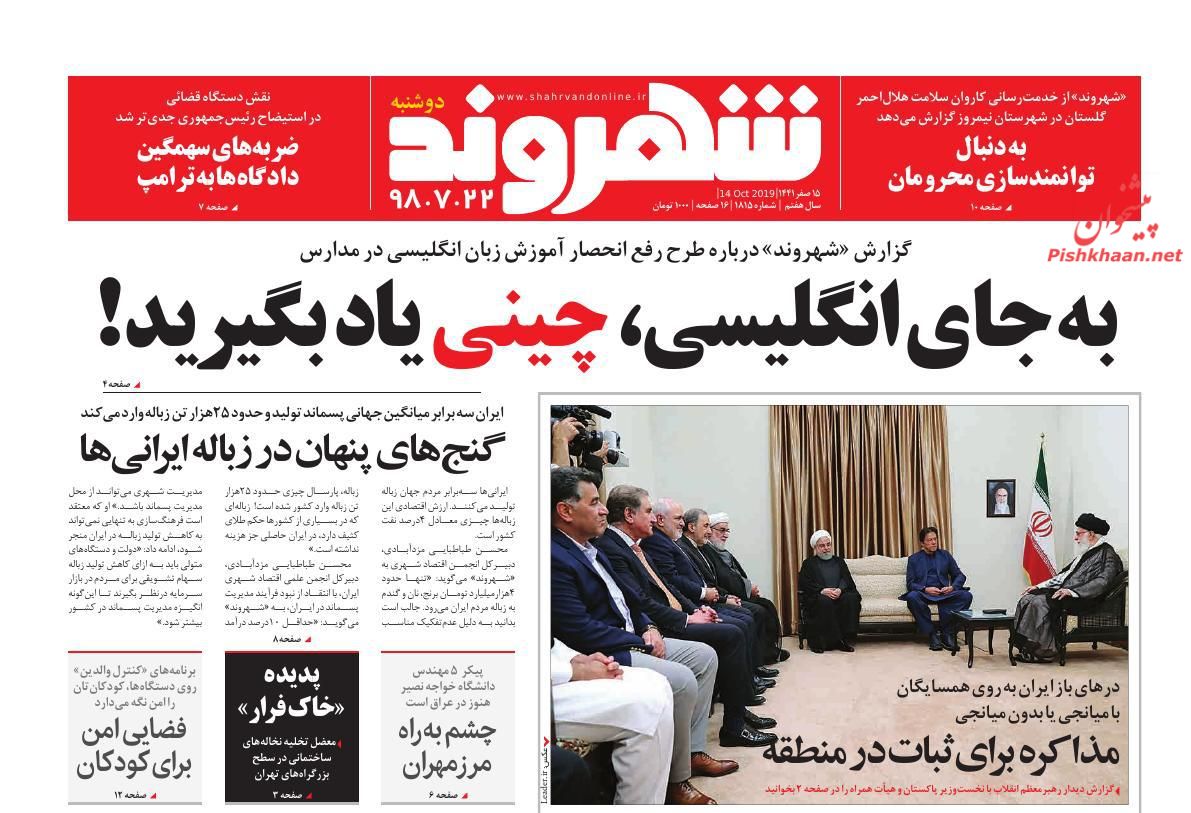 عصر ایرانیان ، دوشنبه ۲۲ مهر