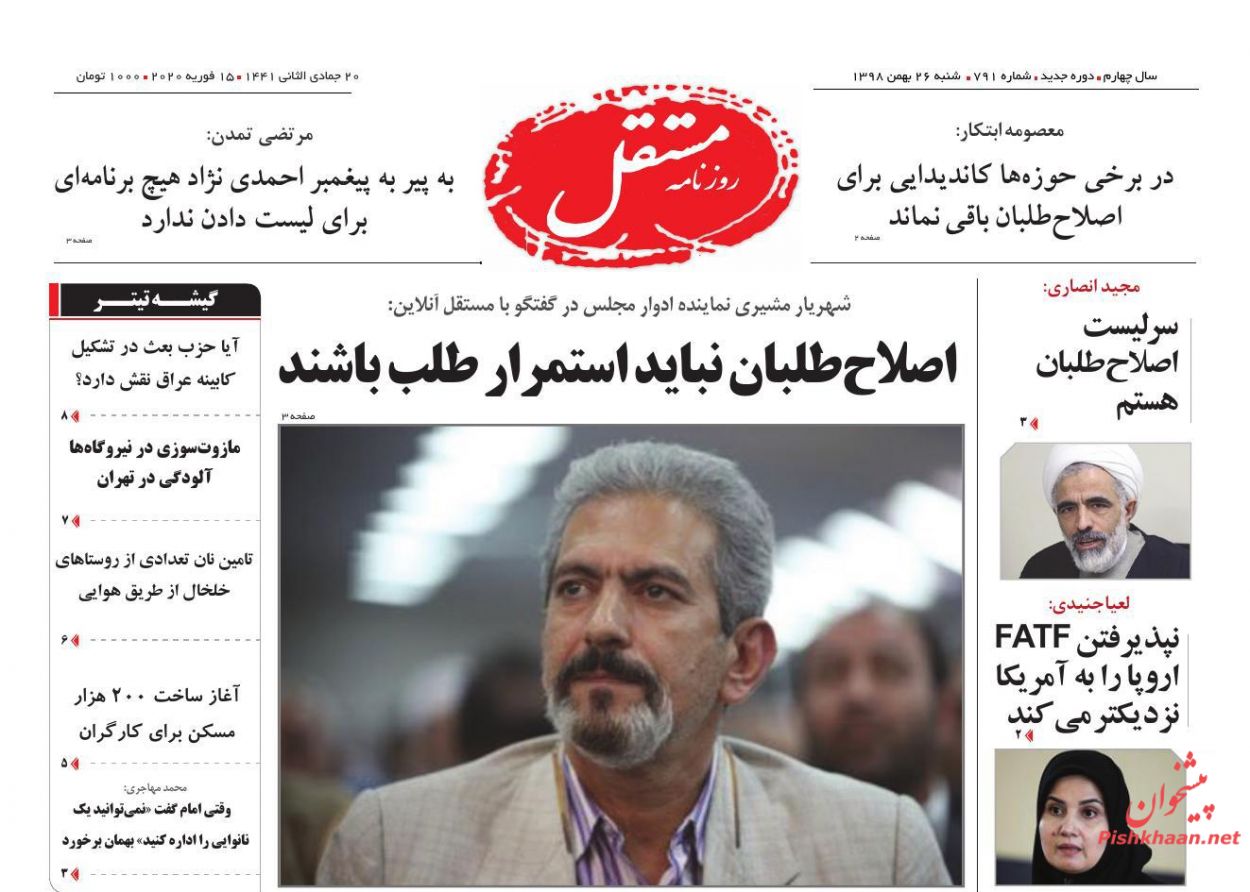 صدای اصلاحات ، شنبه ۲۶ بهمن