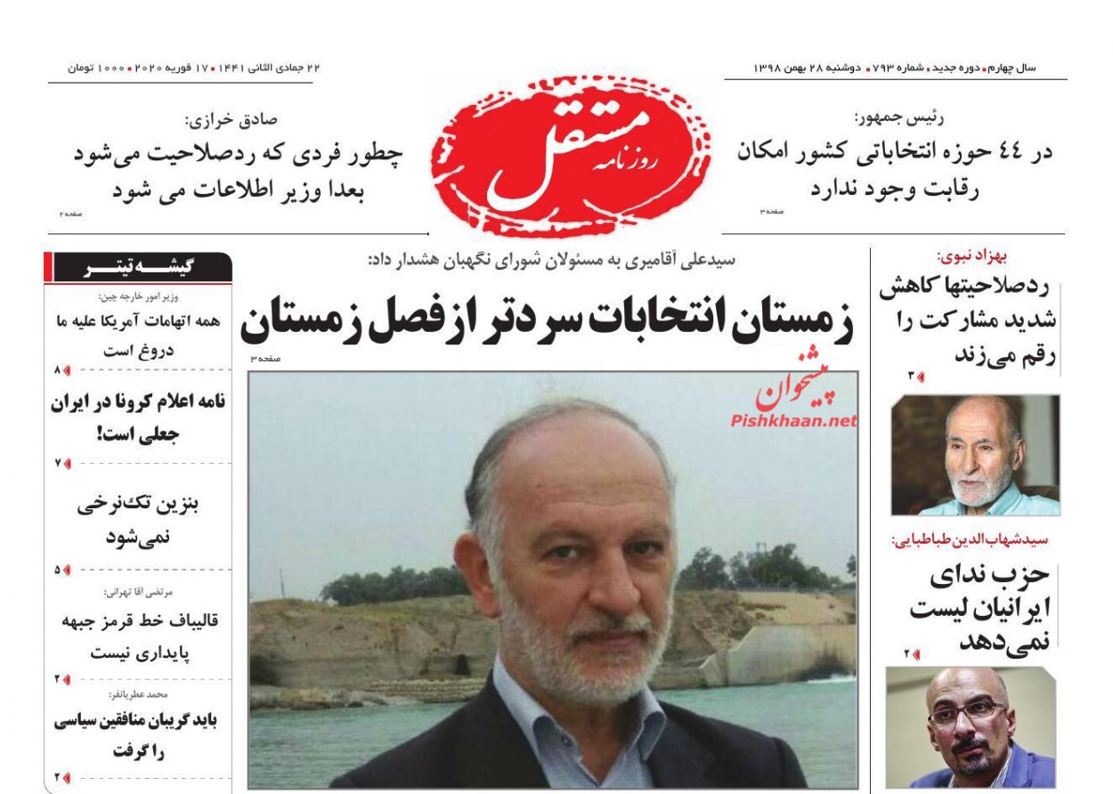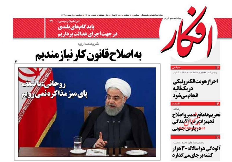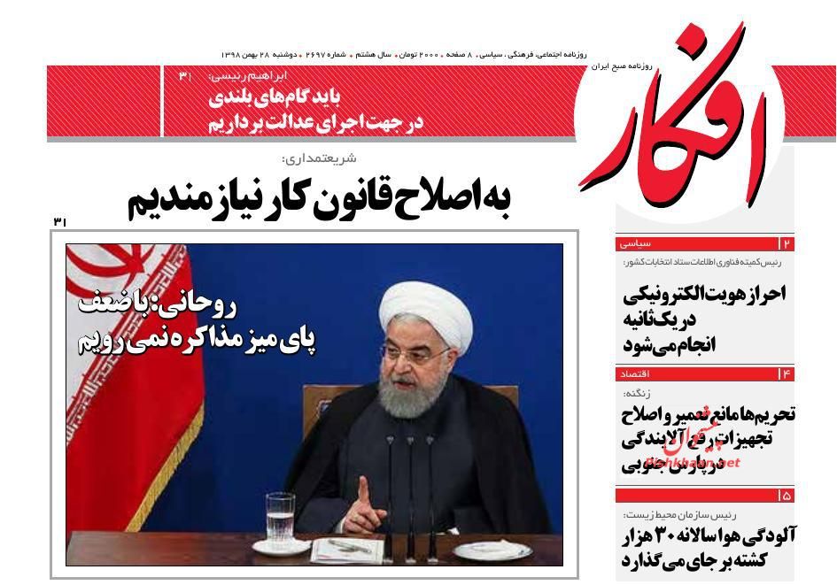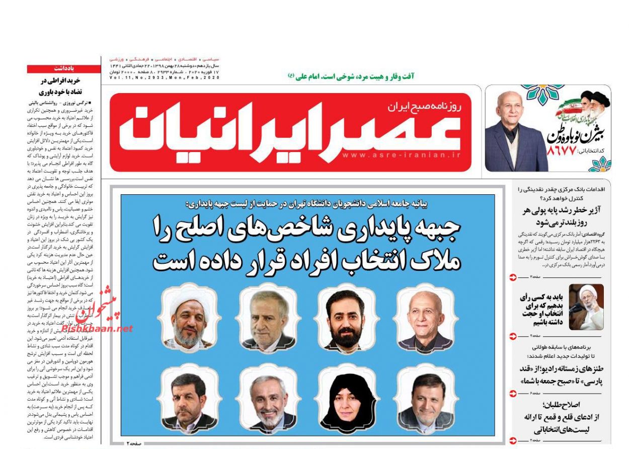 عصر ایرانیان ، دوشنبه ۲۸ بهمن