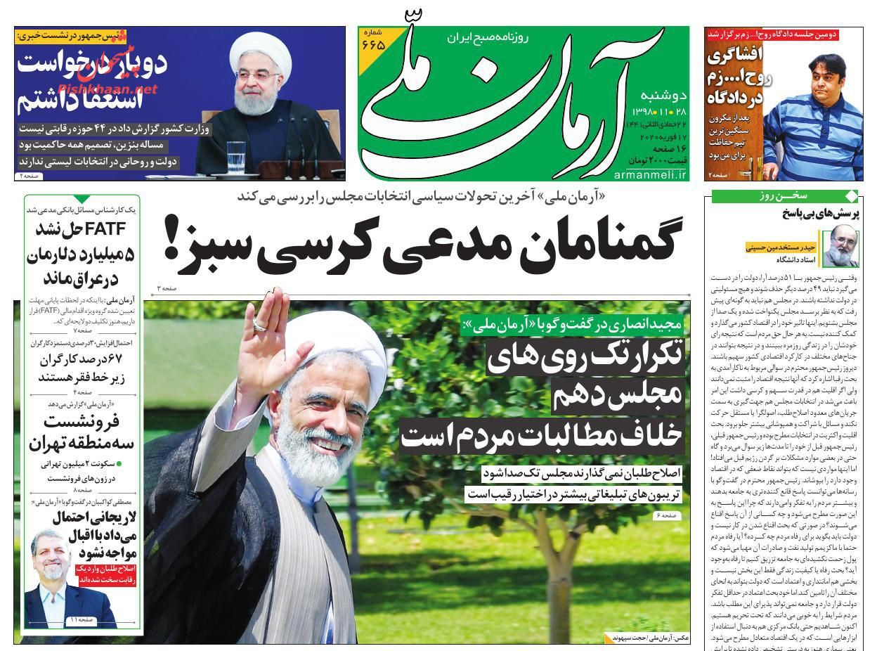 آرمان ملی ، دوشنبه ۲۸ بهمن