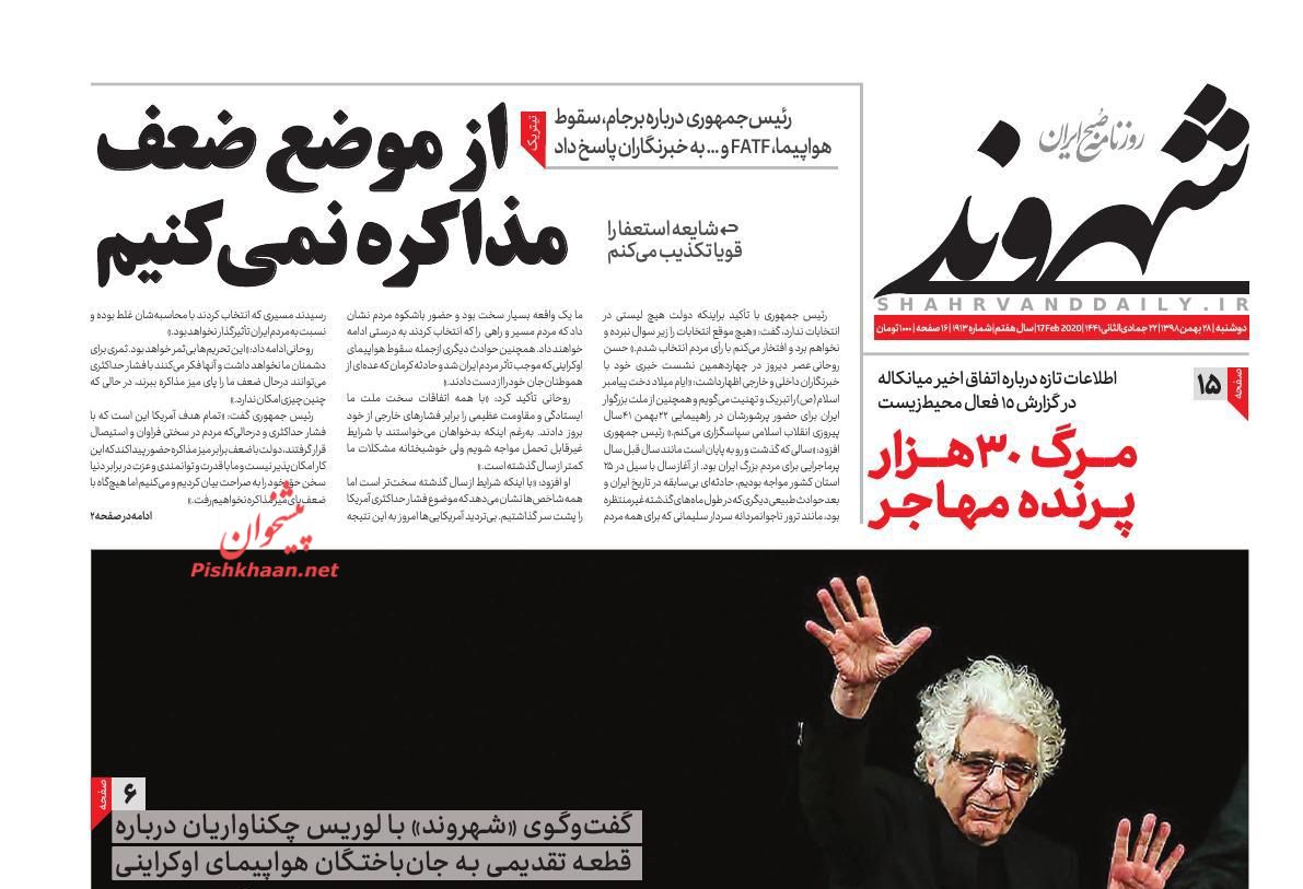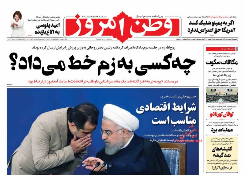 وطن امروز ، دوشنبه ۲۸ بهمن