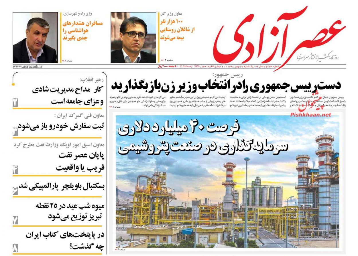 عصرآزادی ، یکشنبه ۲۷ بهمن