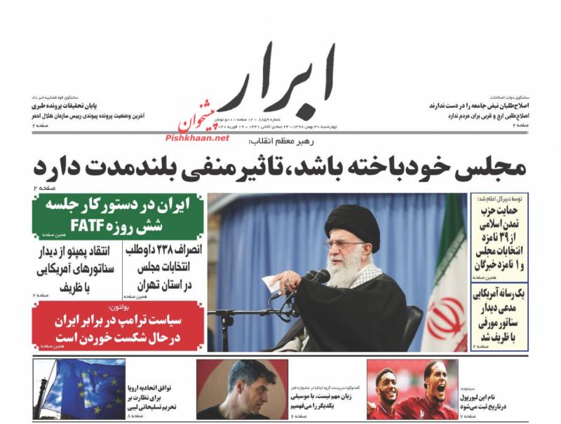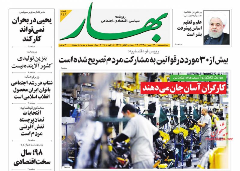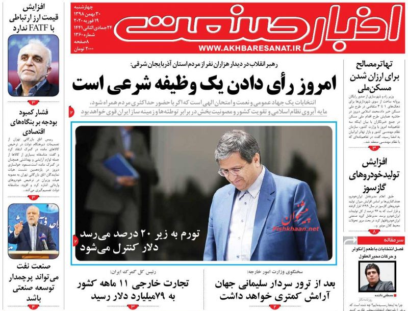 ابتکار ، چهارشنبه ۳۰ بهمن