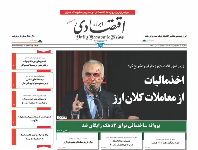 ابرار اقتصادی ، چهارشنبه ۳۰ بهمن