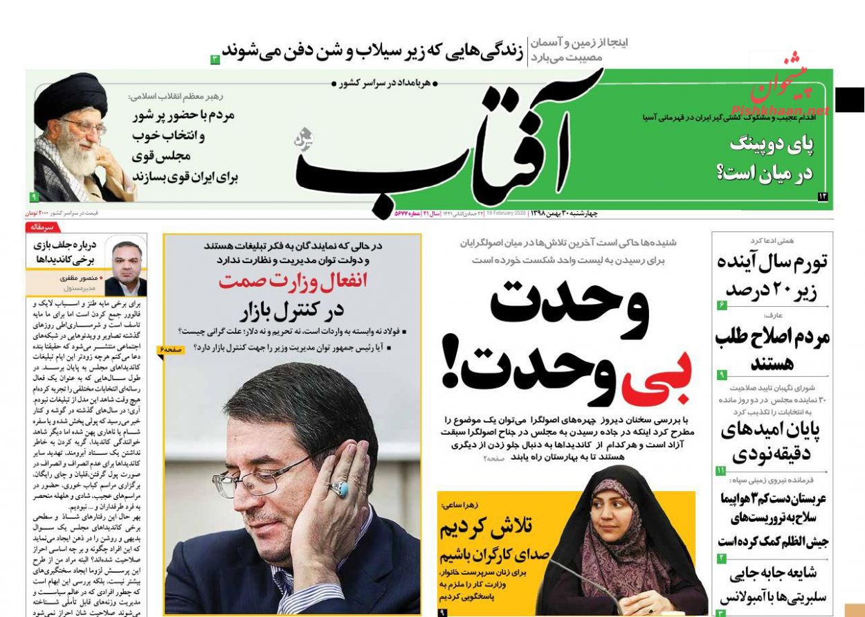 آفتاب یزد ، چهارشنبه ۳۰ بهمن