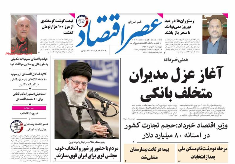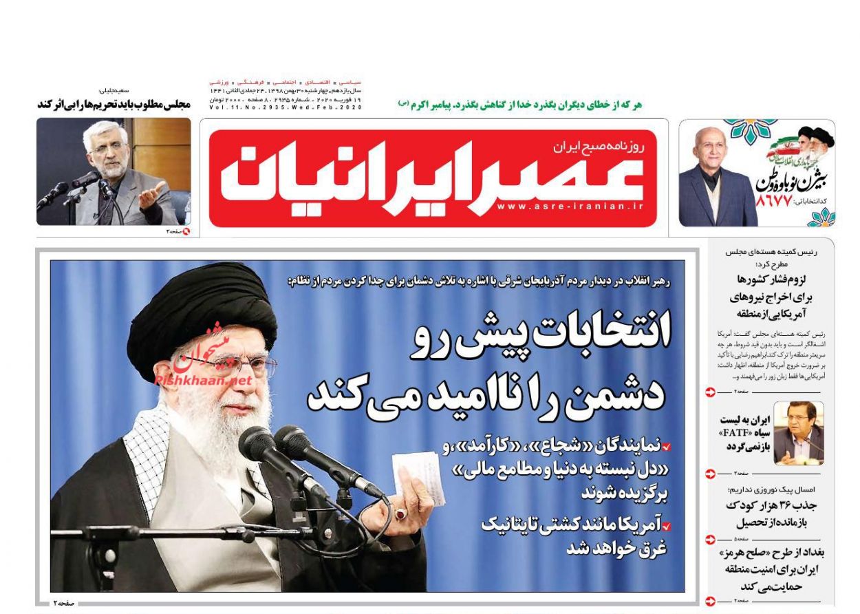 عصر ایرانیان ، چهارشنبه ۳۰ بهمن