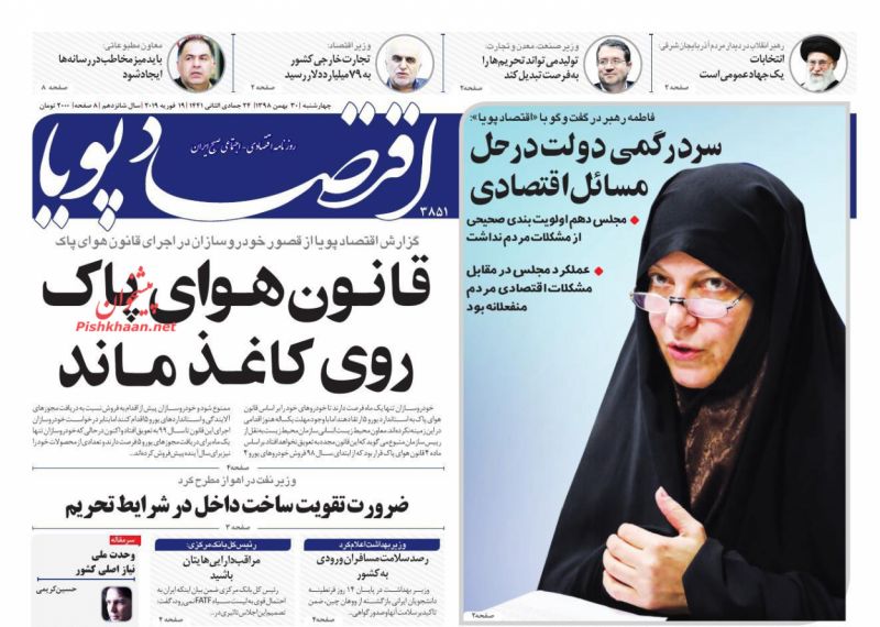 اقتصاد ملی ، یکشنبه ۲۰ بهمن