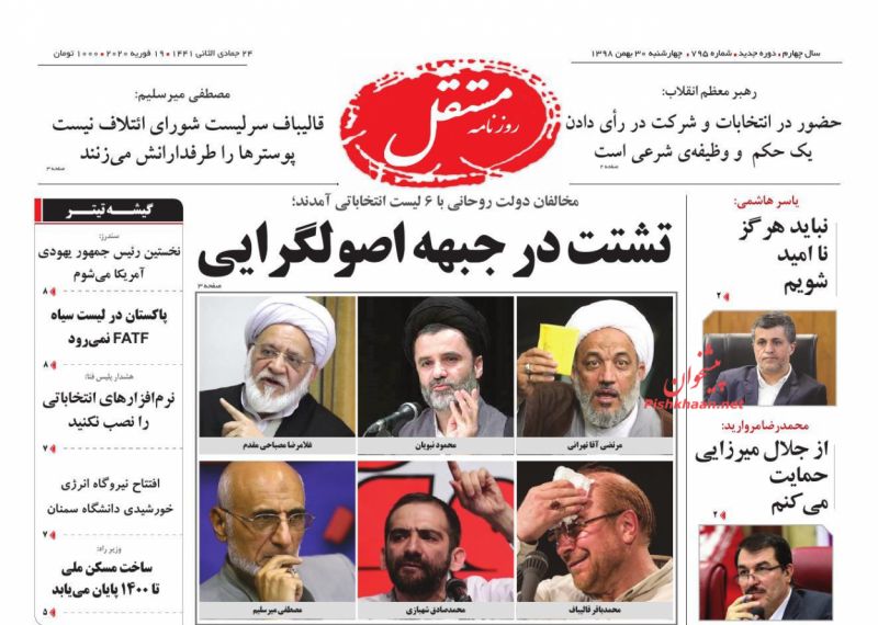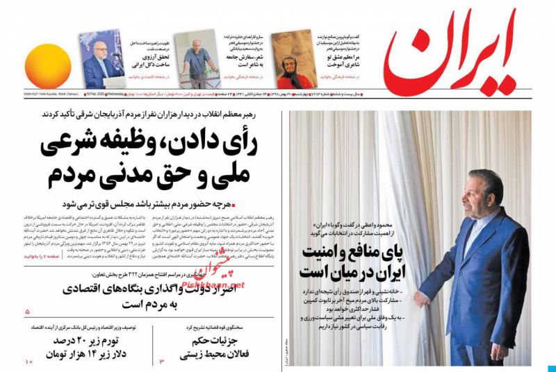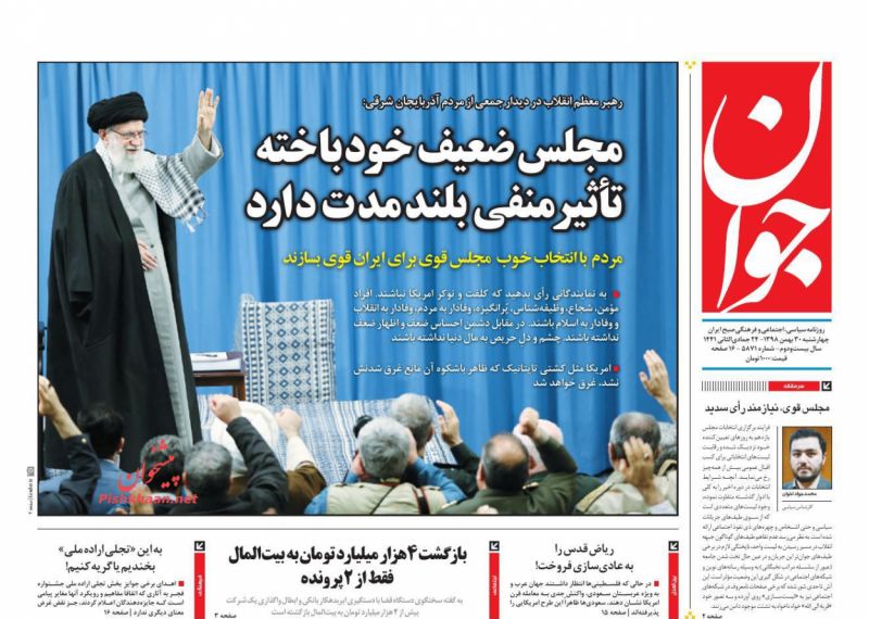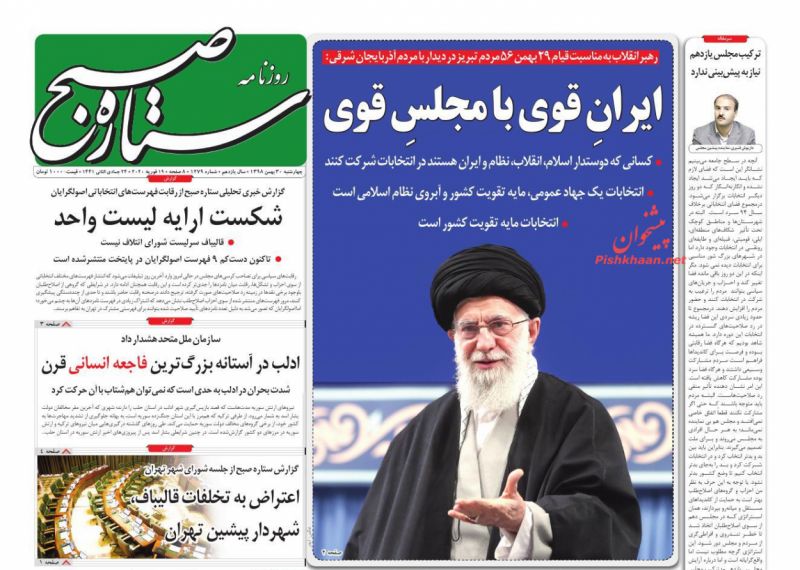 جمهوری اسلامی ، چهارشنبه ۳۰ بهمن