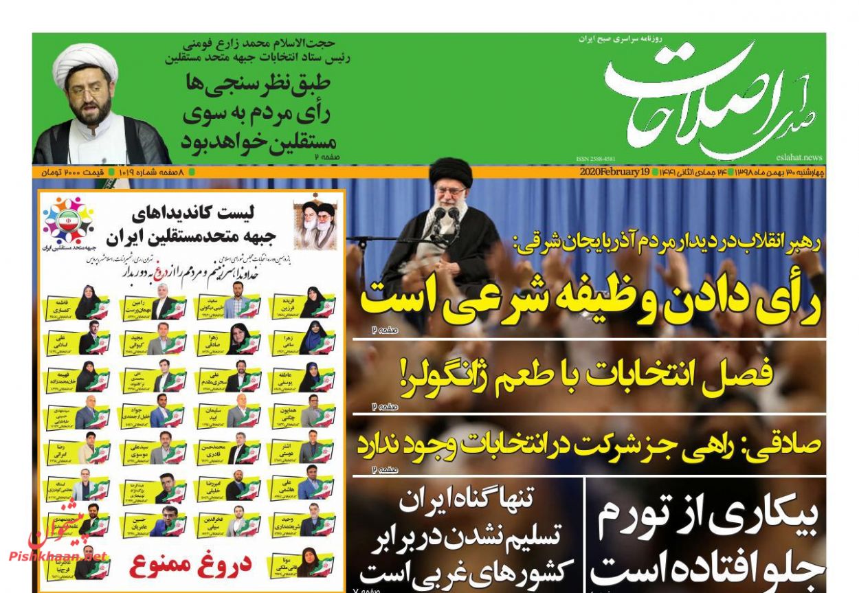 صدای اصلاحات ، چهارشنبه ۳۰ بهمن