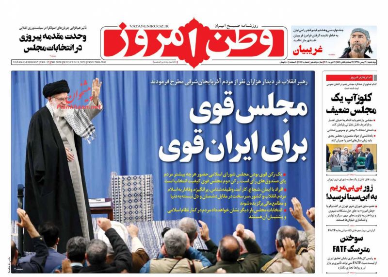 وطن امروز ، چهارشنبه ۳۰ بهمن