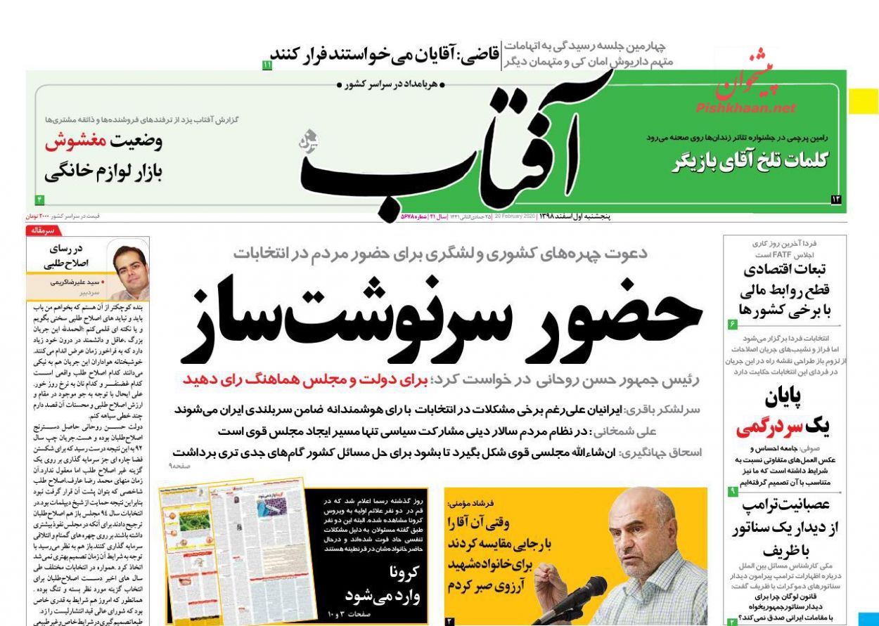 آفتاب یزد ، پنجشنبه ۱ اسفند
