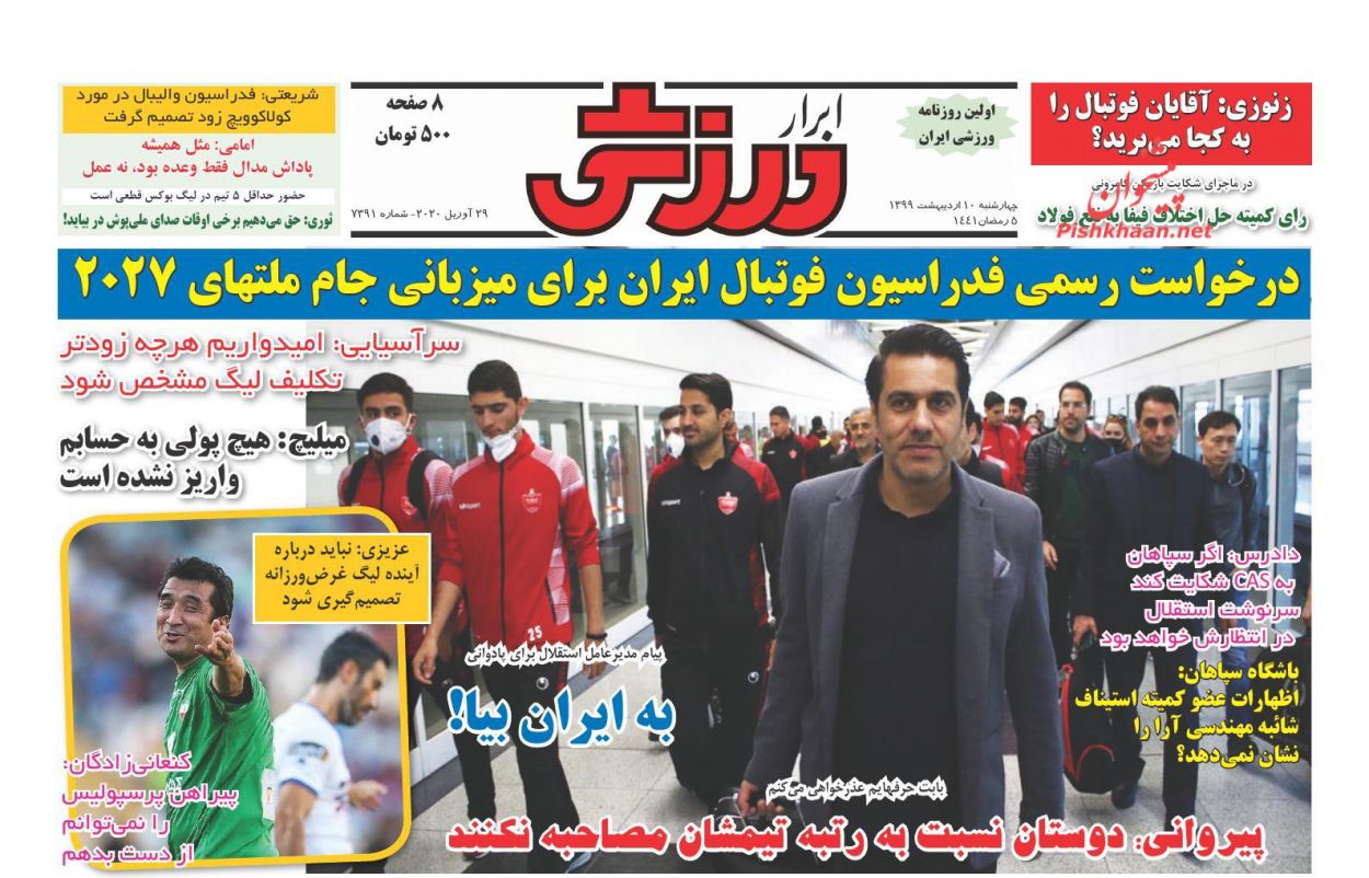 استقلال جوان ، سهشنبه ۲۶ فروردين