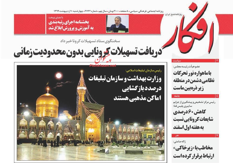 ابتکار ، چهارشنبه ۱۰ ارديبهشت