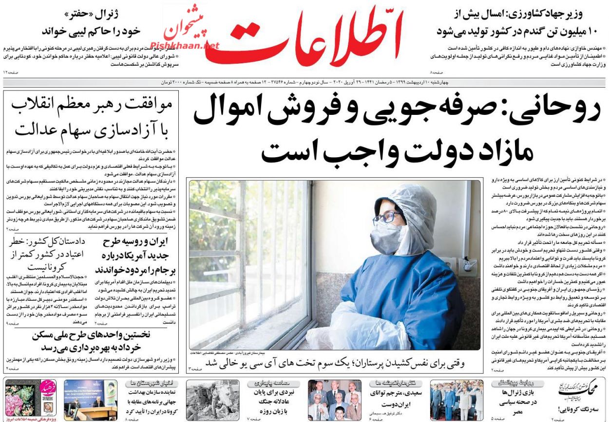 اطلاعات ، چهارشنبه ۱۰ ارديبهشت
