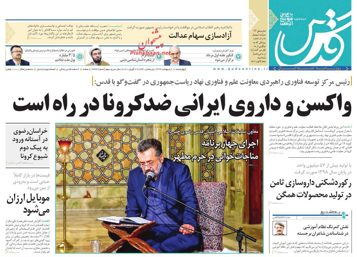 قدس ، چهارشنبه ۱۰ ارديبهشت