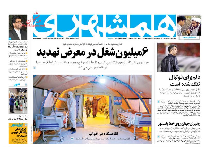 همشهری ، چهارشنبه ۱۰ ارديبهشت