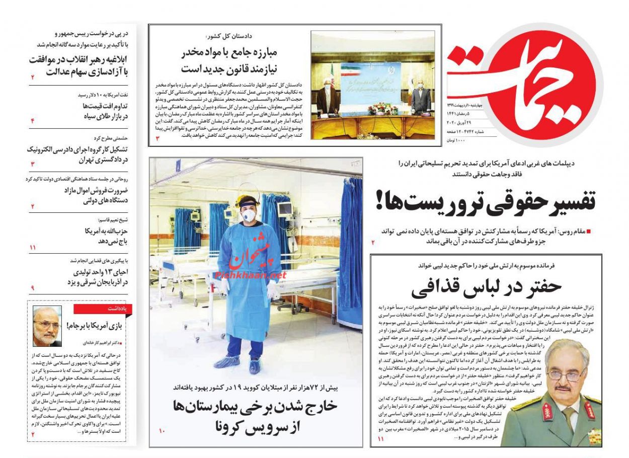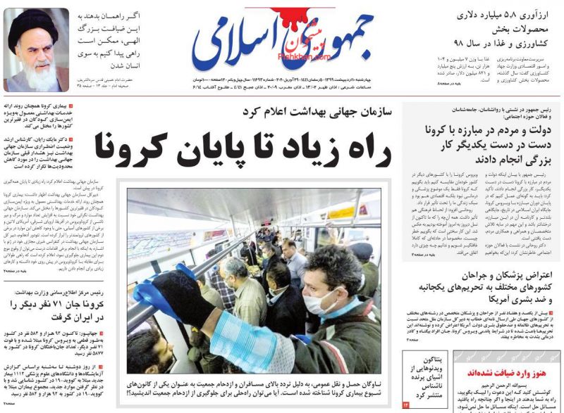 جمهوری اسلامی ، چهارشنبه ۱۰ ارديبهشت