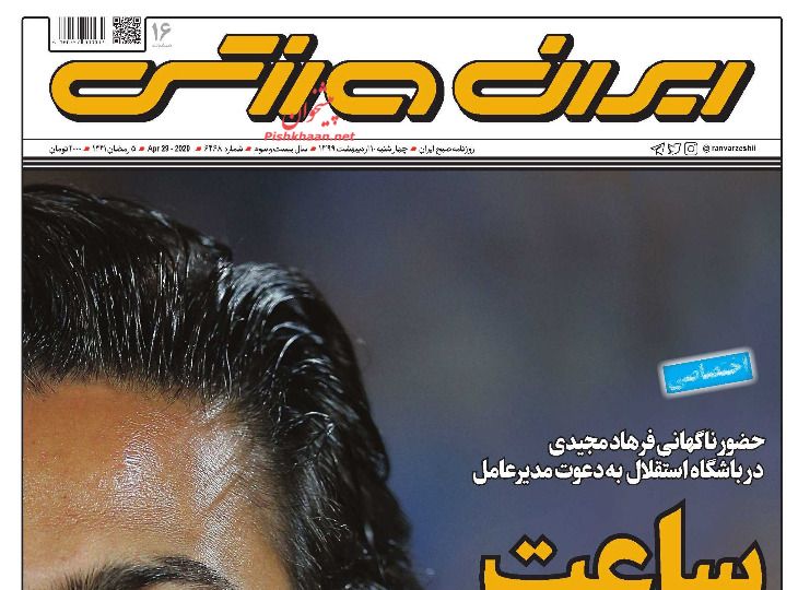 ایران ورزشی ، چهارشنبه ۱۰ ارديبهشت