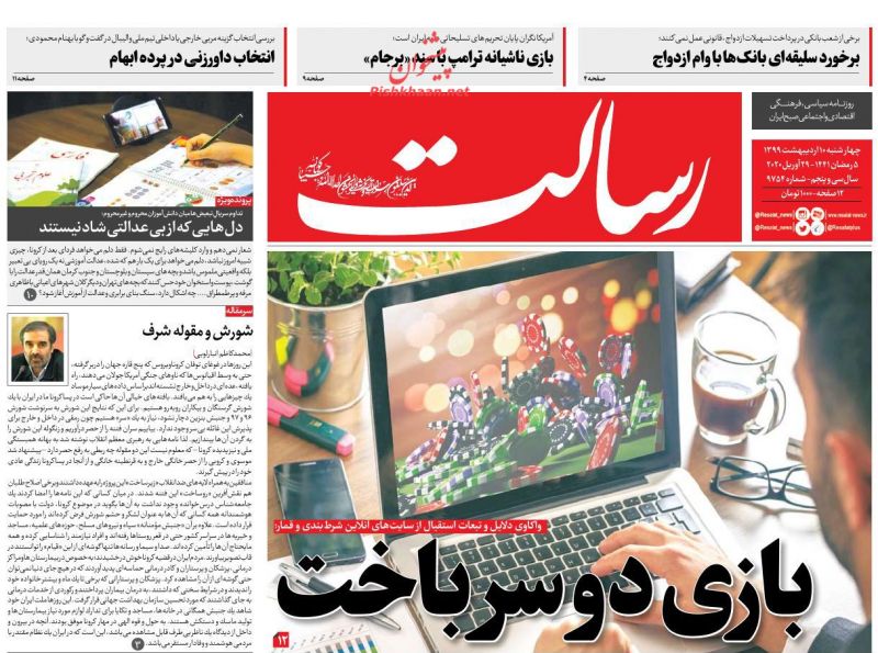 رسالت ، چهارشنبه ۱۰ ارديبهشت