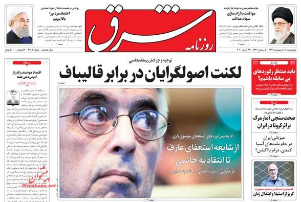 شرق ، چهارشنبه ۱۰ ارديبهشت