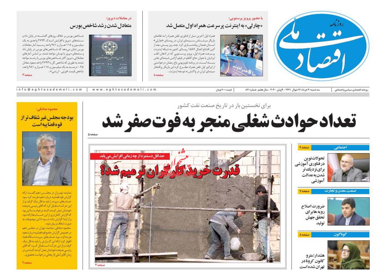 اقتصاد ملی ، سهشنبه ۲۰ خرداد