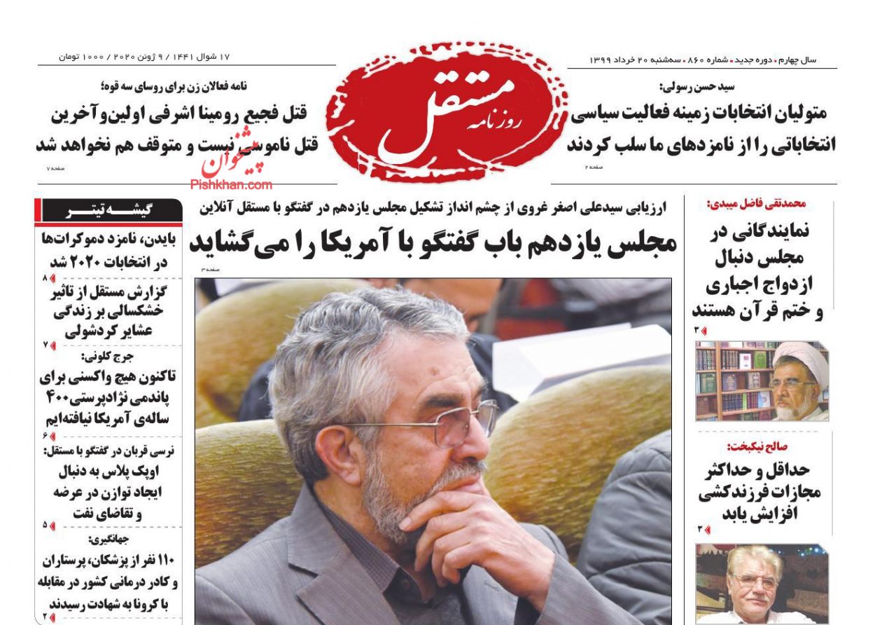 مستقل ، سهشنبه ۲۰ خرداد