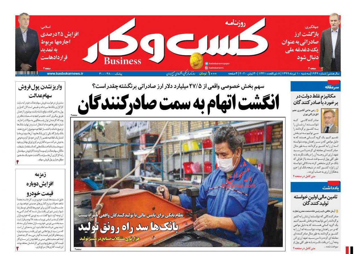 كسب و كار ، سهشنبه ۱۰ تیر