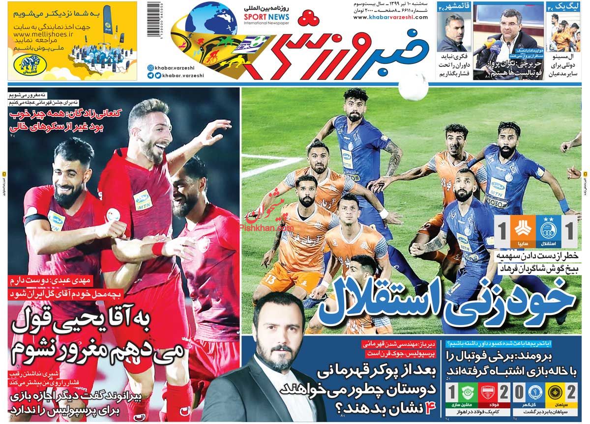 ایران ورزشی ، سهشنبه ۱۰ تیر