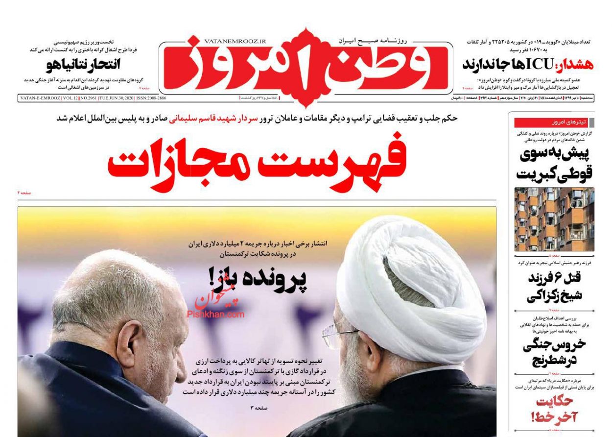 وطن امروز ، سهشنبه ۱۰ تیر