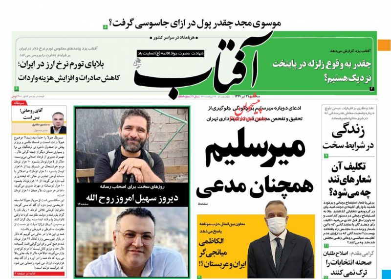 عصر ایرانیان ، سهشنبه ۳۱ تیر
