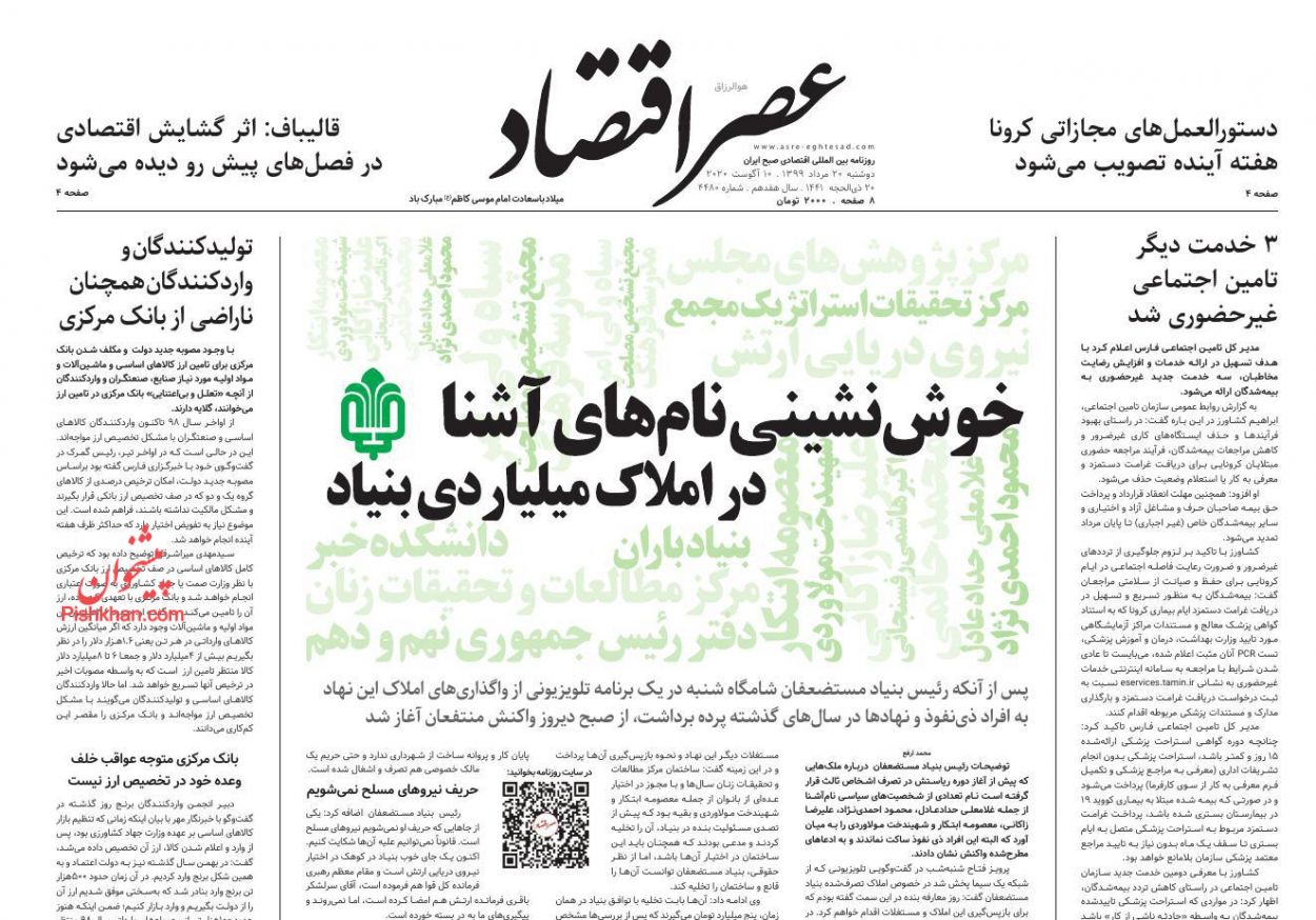 عصر اقتصاد ، دوشنبه ۲۰ مرداد