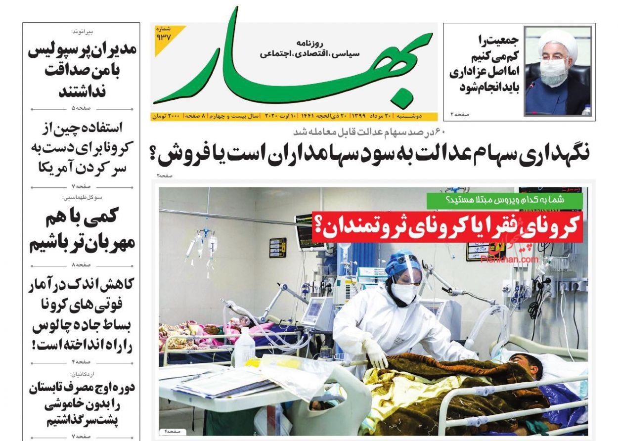 عصر ایرانیان ، دوشنبه ۲۰ مرداد