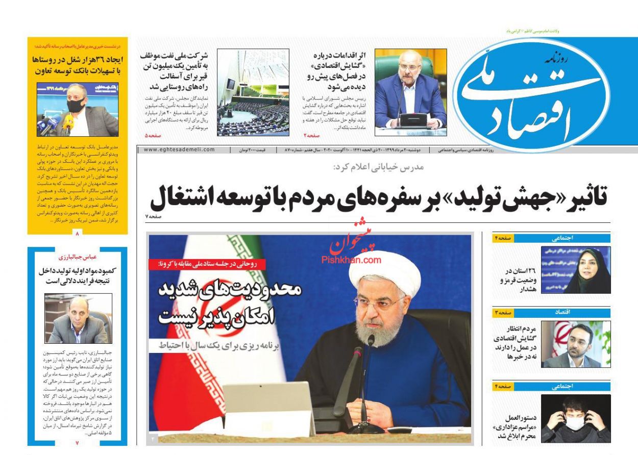 اقتصاد ملی ، دوشنبه ۲۰ مرداد