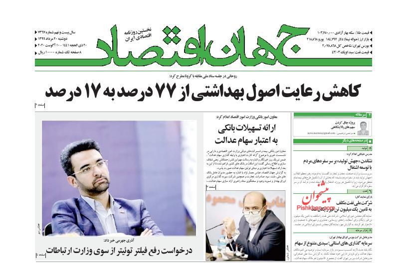 جهان اقتصاد ، دوشنبه ۲۰ مرداد