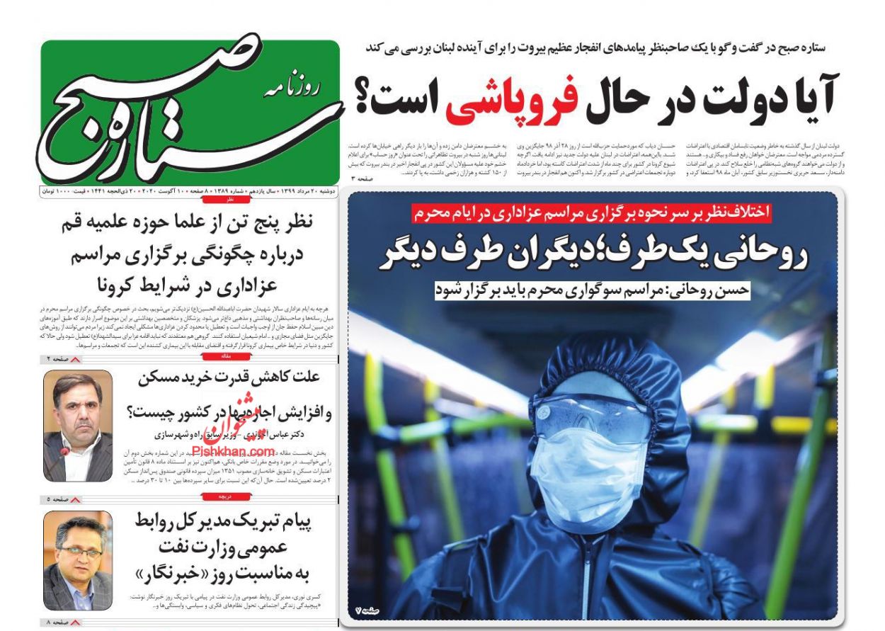 صبح امروز ، دوشنبه ۲۰ مرداد